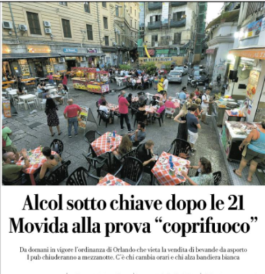 L'edizione odierna de "La Repubblica" si sofferma sulla movida di Palermo, alle prese con la prova "coprifuoco. Bere un bicchiere...
