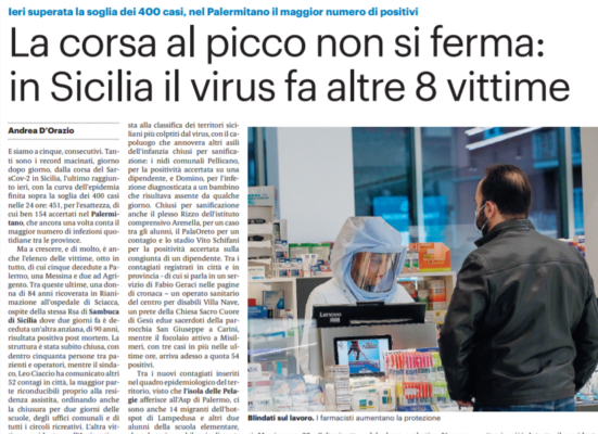 L'edizione odierna del "Giornale di Sicilia" si sofferma sull'emergenza Coronavirus in Sicilia. Ennesimo nuovo record: ieri la curva dell'epidemia si...