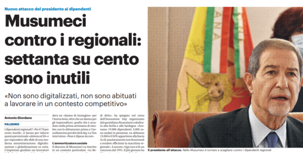 L'edizione odierna del "Giornale di Sicilia" si sofferma sull'ennesimo attacco di Nello Musumeci, governatore della Sicilia, ai dipendenti regionali. «Per...