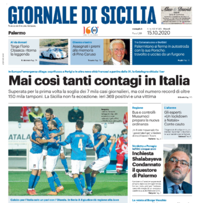 Nella sua prima pagina l'edizione odierna del "Giornale di Sicilia" si sofferma sull'emergenza Coronavirus "Mai così tanti contagi in Italia"....