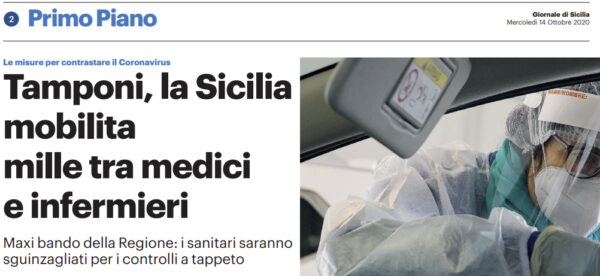 Gds: “Tamponi, la Sicilia mobilita mille tra medici e infermieri”