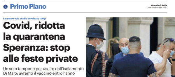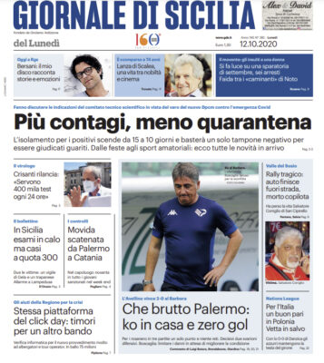 L'edizione odierna del "Giornale di Sicilia" si sofferma sull'emergenza Coronavirus. La quarantena scende a 10 giorni, con i positivi che...