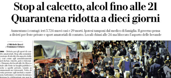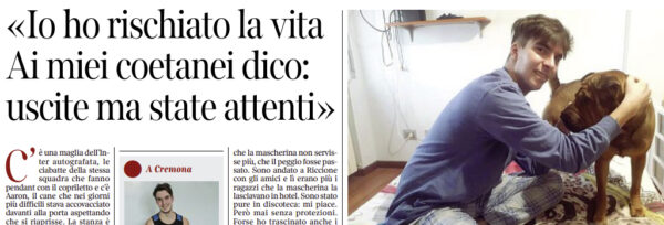 Corriere della Sera: “Mattia, 19 anni, il più giovane d’Italia intubato per Covid «Io ho rischiato la vita. Ai miei coetanei dico: uscite ma state attenti»”