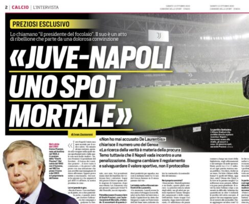 L'edizione odierna del "Corriere dello Sport" riporta le dichiarazioni di Enrico Preziosi, presidente del Genoa: «Juve-Napoli è stato uno spot...