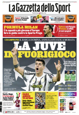 Nella sua prima pagina l'edizione odierna della "Gazzetta dello Sport" si sofferma sulla sconfitta della Juventus contro il Barcellona. I...