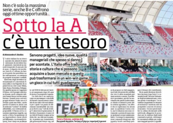 Corriere dello Sport: “Sotto la A c’è un tesoro. Le vicende del Palermo hanno creato diffidenza tra i tifosi”