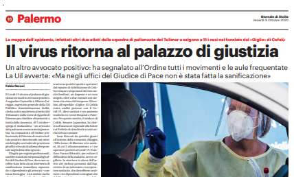 L'edizione odierna del "Giornale di Sicilia" parla del Covid-19 che ritorna al palazzo di giustizia con un altro avvocato positivo....