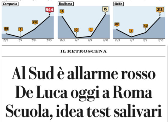 Corriere della Sera: “Balzo dei contagi, 3.678 nuovi casi. Mai così tanti da metà aprile. Il governo valuta il ritorno alla linea dura”