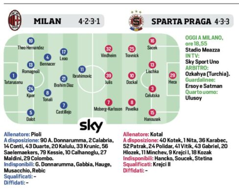 Corriere dello Sport: “Europa League. Stasera Milan-Sparta Praga, le probabili formazioni” (FOTO)