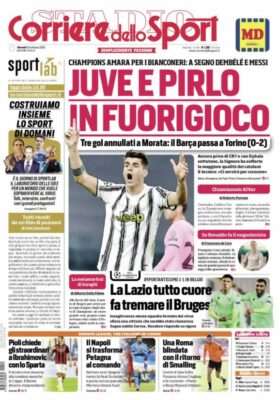 Nella sua prima pagina l'edizione odierna del "Corriere dello Sport" si sofferma sulla sconfitta della Juventus contro il Barcellona. Gli...