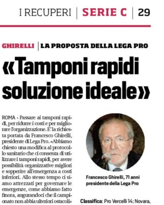 L'edizione odierna del "Corriere dello Sport" riporta le dichiarazioni di Francesco Ghirelli, presidente della Lega Pro: «Abbiamo chiesto una modifica...