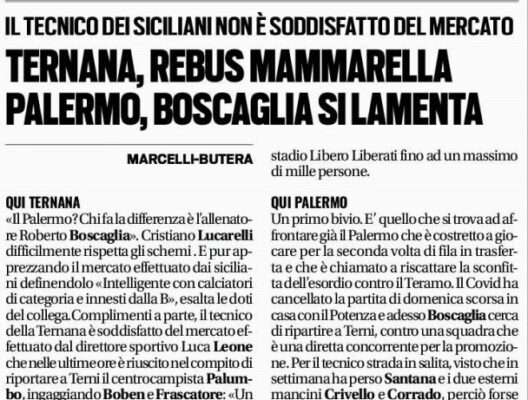 L'edizione odierna di "Tuttosport" si sofferma su Ternana-Palermo. Lucarelli spiega «Il Palermo? Chi fa la differenza è Boscaglia». Le Fere...