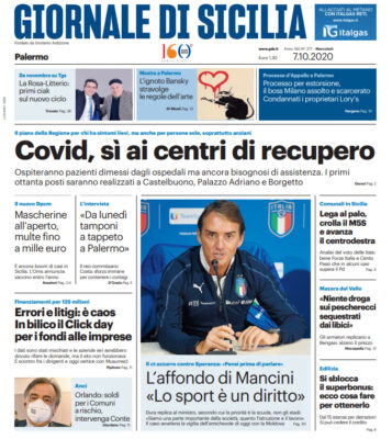Nella sua prima pagina l'edizione odierna del "Giornale di Sicilia" si sofferma sui centri di recupero che ospiteranno i pazienti...