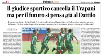 L'edizione odierna di "Repubblica" parla della situazione del Trapani. Il calcio è una cosa seria - scrive il quotidiano -....