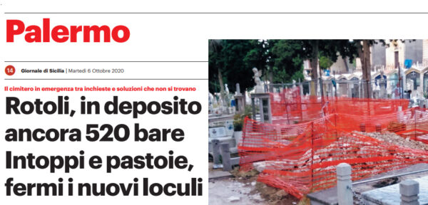 L'edizione odierna del "Giornale di Sicilia" parla ancora della situazione legata al cimitero dei rotoli di Palermo. I morti non...