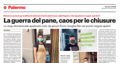 L'edizione odierna del "Giornale di Sicilia" parla di caos e rabbia nel primo giorno di stop domenicale dei panificatori, disorientati...