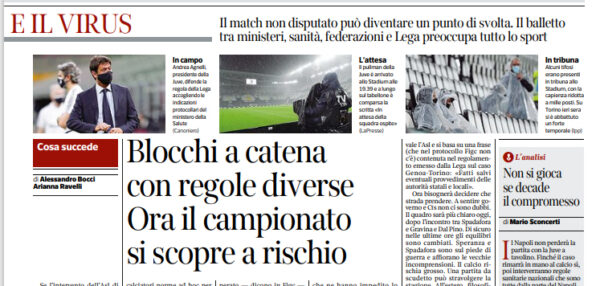 L'edizione odierna del "Corriere della Sera" parla della situazione della serie A. Rischia di partire il campionato delle Asl -...