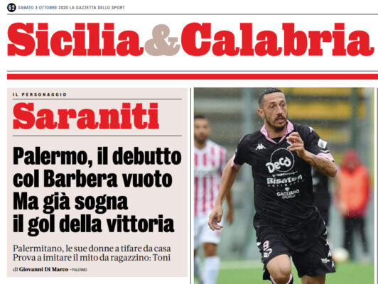 L'edizione odierna della "Gazzetta dello Sport" si sofferma sull'esordio di Andrea Saraniti sul campo del "Barbera". Avrebbe voluto esordire in...