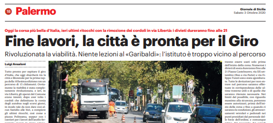 L'edizione odierna del "Giornale di Sicilia" si sofferma sul Giro d'Italia a Palermo. Tutto pronto per la prima tappa, si...