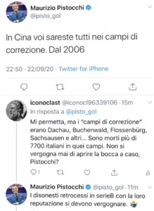 Il giornalista Maurizio Pistocchi ha risposto ad un tifoso juventino attraverso la propria pagina Twitter, spiegando "In Cina sareste tutti...