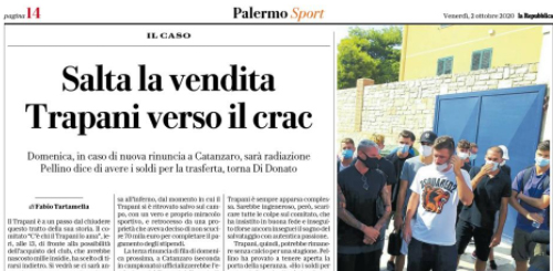 L'edizione odierna de "La Repubblica" si sofferma sul Trapani. Salta la cessione al Comitato "C'è chi il Trapani lo ama",...