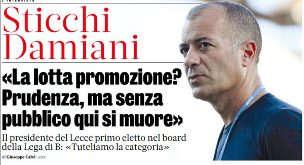 L'edizione odierna della "Gazzetta dello Sport" riporta le dichiarazioni di Saverio Sticchi Damiani, presidente del Lecce: «Pettinari? Stiamo alla finestra,...
