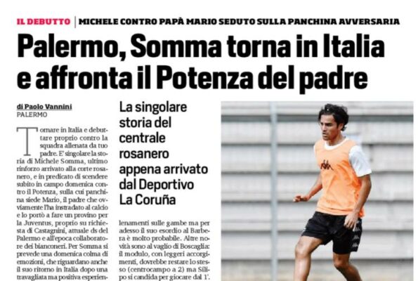 L'edizione odierna del "Corriere dello Sport" si sofferma su Michele Somma, nuovo difensore del Palermo. Singolare la sua storia: torna...
