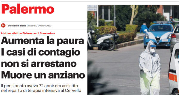 L'edizione odierna del "Giornale di Sicilia" si sofferma sull'emergenza Coronavirus a Palermo. Altri due atleti del Telimar di serie A1...