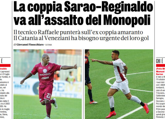 Gazzetta dello Sport: “Catania. La coppia Sarao-Reginaldo va all’assalto del Monopoli”