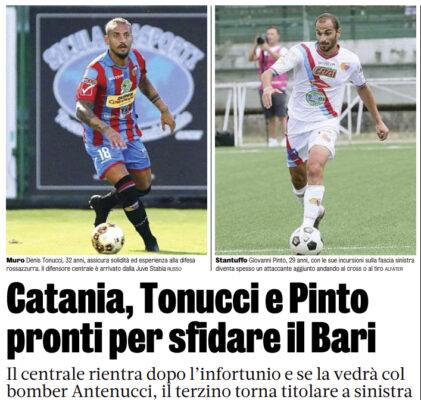 L'edizione odierna della "Gazzetta dello Sport" si sofferma sul Catania. Nella sfida contro il Bari rientrerà il centrale Tonucci, che...
