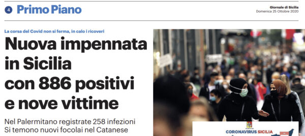 L'edizione odierna del "Giornale di Sicilia" si sofferma sull'emergenza Coronavirus in Sicilia. Ieri 886 nuovi contagiati. Sono 14 in più...