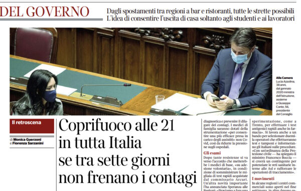 L'edizione odierna del "Corriere della Sera" si sofferma sull'ennesima stretta anti-Covid 19. Se entro una settimana non arriveranno effetti positivi...