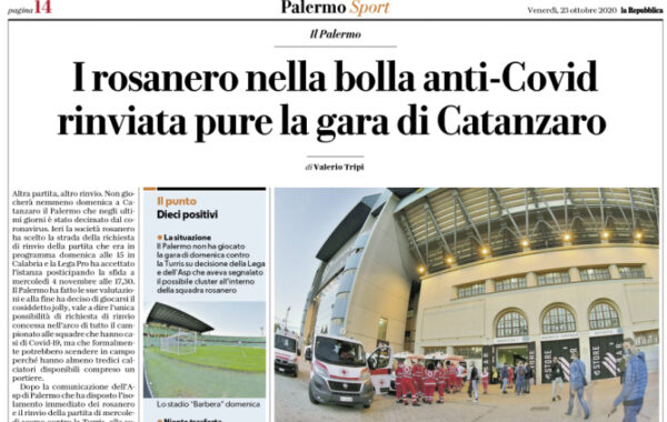 L'edizione odierna de "La Repubblica" si sofferma sul focolaio Palermo. Non si giocherà nemmeno domenica a Catanzaro: la società ha...