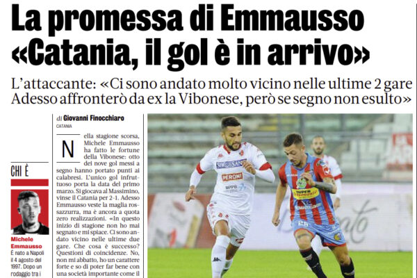 L'edizione odierna della "Gazzetta dello Sport" si sofferma sul momento di Michele Emmausso, attaccante del Catania: «In questo inizio di...
