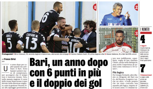 L'edizione odierna della "Gazzetta dello Sport2 si sofferma sul Bari. Un anno dopo i galletti si ritrovano con 6 punti...