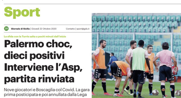 L'edizione odierna del Giornale di Sicilia si occupa del rinvio di Palermo-Turris a causa dei 10 casi di coronavirus riscontrati...