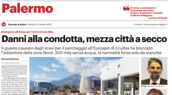 L'edizione odierna del Giornale di Sicilia si occupa dell'emergenza acqua che ha coinvolto ieri la città di Palermo. L'incidente si...
