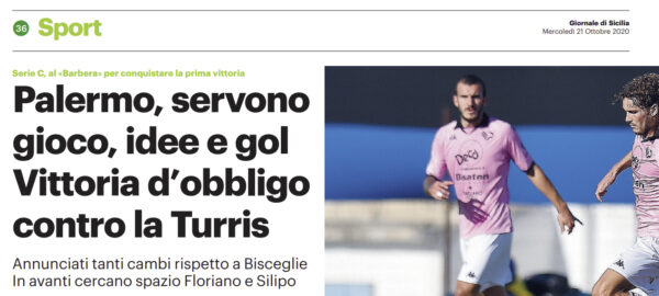 L'edizione odierna del "Giornale di Sicilia" si sofferma sulla sfida Palermo-Turris. Dopo la botta di Bisceglie i cambi sono necessari,...