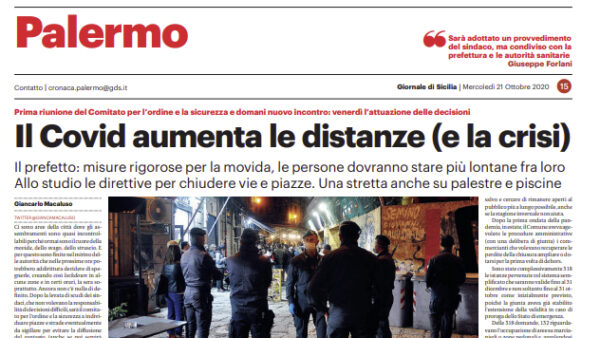 L'edizione odierna del "Giornale di Sicilia" si sofferma sulla stretta anti-Covid. Ci sono aree della città dove gli assembramenti sono...