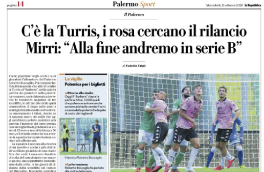 L'edizione odierna de "La Repubblica" si sofferma sulla sfida Palermo-Turris. La squadra è ancora alla ricerca di un assetto e...