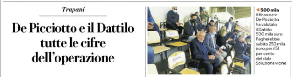 L'edizione odierna de "La Repubblica" si sofferma sull'interesse di René De Picciotto per il Dattilo. Valutata la società 500 mila...