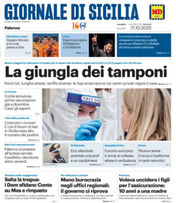 Prima pagina Giornale di Sicilia: “La giungla dei tamponi. Ospedale Civico. Il pronto soccorso è ormai al collasso, attese in ambulanza”