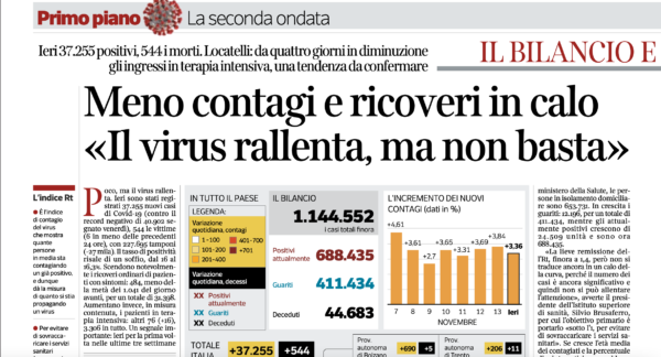 L'edizione odierna del "Corriere della Sera" parla della situazione attuale della pandemia in Italia. Poco, a il virus rallenta -...
