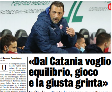 L'edizione odierna della "Gazzetta dello Sport" riporta le dichiarazioni di Giuseppe Raffaele, allenatore del Catania, in vista della sfida contro...
