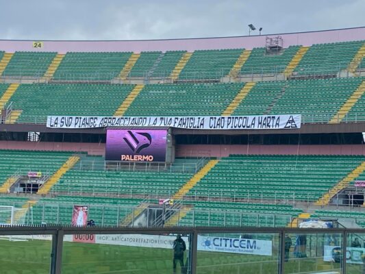 Al "Renzo Barbera" due striscioni, affissi dalla Curva Nord e dalla Curva Sud ricordano Marta, la bimba di dieci anni...