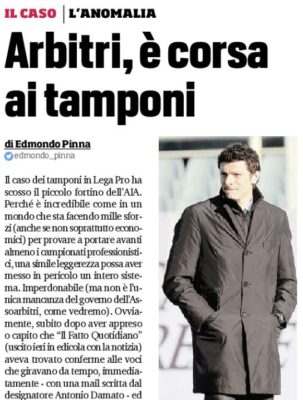 L'edizione odierna del "Corriere dello Sport" si sofferma sul caso tamponi tra gli arbitri. Il piccolo fortino dell'AIA è scosso...