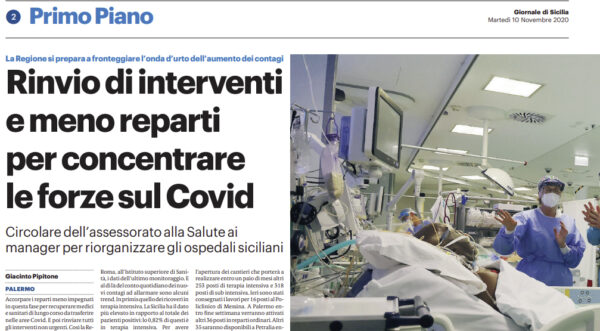 L'edizione odierna del "Giornale di Sicilia" si sofferma sull'emergenza Coronavirus in Sicilia. Accorpare i reparti meno impegnati in questa fase...