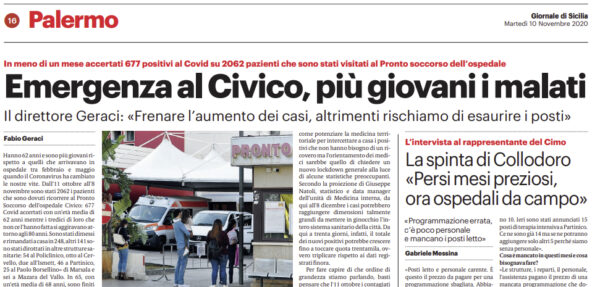 L'edizione odierna del "Giornale di Sicilia" si sofferma sulle problematiche dell'ospedale "Civico" di Palermo. Dall’11 ottobre all’8 novembre sono stati...