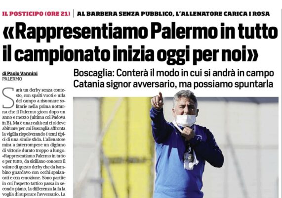 L'edizione odierna del "Corriere dello Sport" riporta le dichiarazioni di Roberto Boscaglia, allenatore del Palermo, in vista del derby contro...