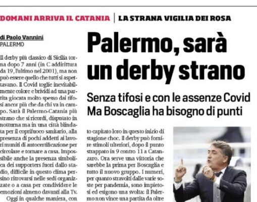 L'edizione odierna del "Corriere dello Sport" si sofferma sul derby fra Palermo e Catania. Il Covid toglie inevitabilmente colore e...